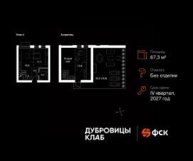 Продаётся 2-к квартира 157 общей площадью 67.3 кв.м на 4-м этаже 4 этажного дома. Без отделки.