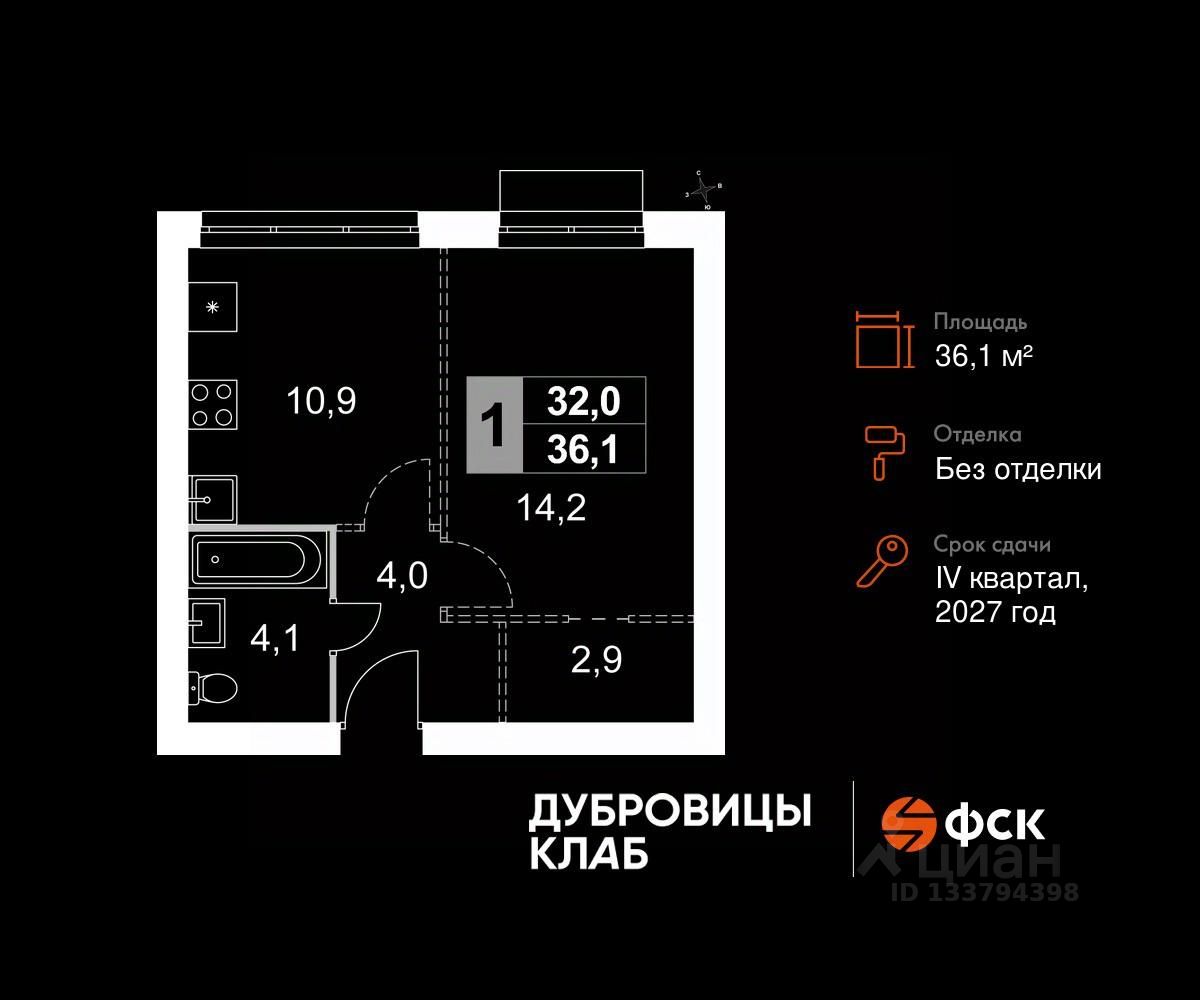 Продаётся 1-к квартира 163 общей площадью 36.1 кв.м на 2-м этаже 4 этажного дома. Без отделки.