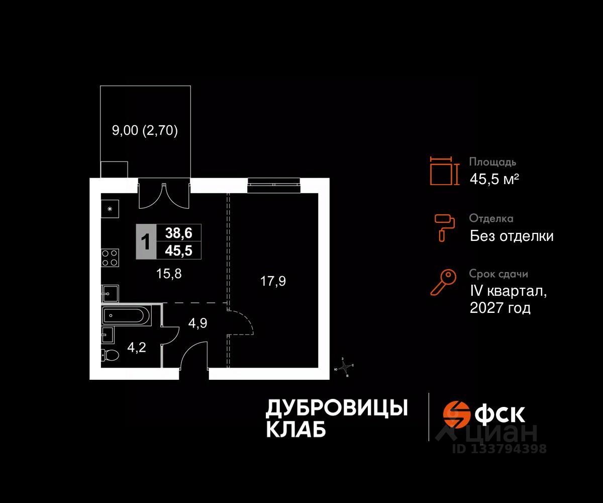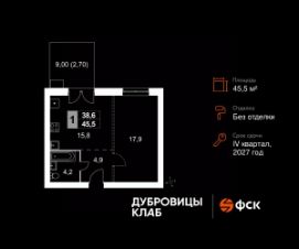 Продаётся 1-к квартира 191 общей площадью 45.5 кв.м на 1-м этаже 4 этажного дома. Без отделки.