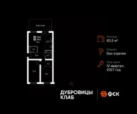 Продаётся 2-к квартира 222 общей площадью 83.5 кв.м на 1-м этаже 4 этажного дома. Без отделки.