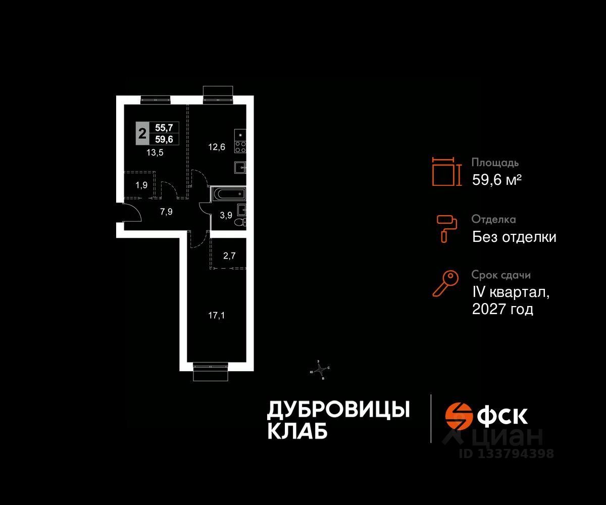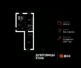 Продаётся 2-к квартира 276 общей площадью 59.6 кв.м на 2-м этаже 4 этажного дома. Без отделки.