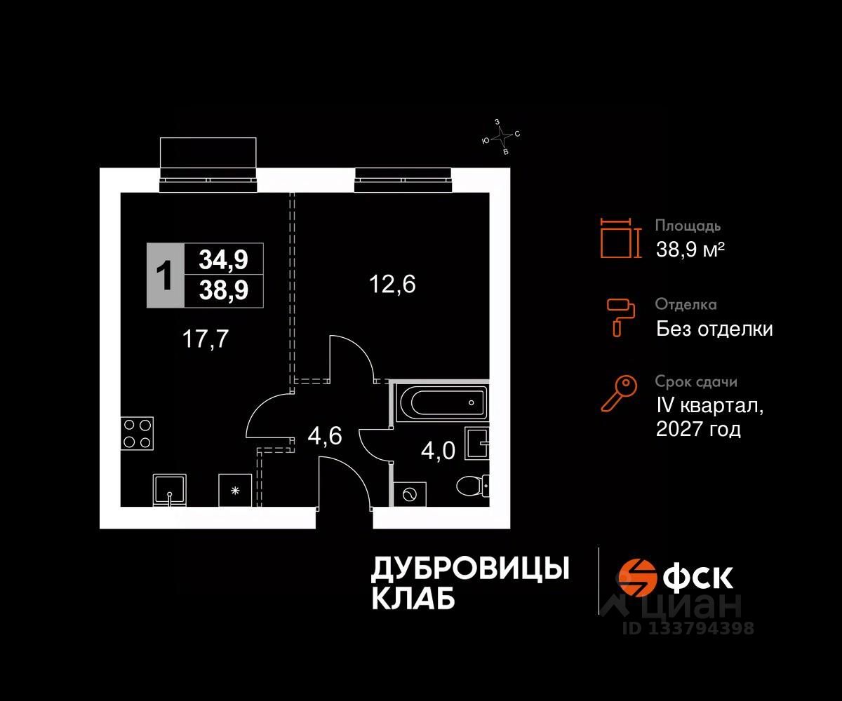 Продаётся 1-к квартира 81 общей площадью 38.9 кв.м на 4-м этаже 4 этажного дома. Без отделки.
