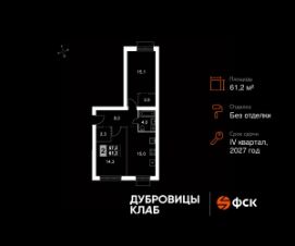 Продаётся 2-к квартира 107 общей площадью 61.2 кв.м на 2-м этаже 4 этажного дома. Без отделки.
