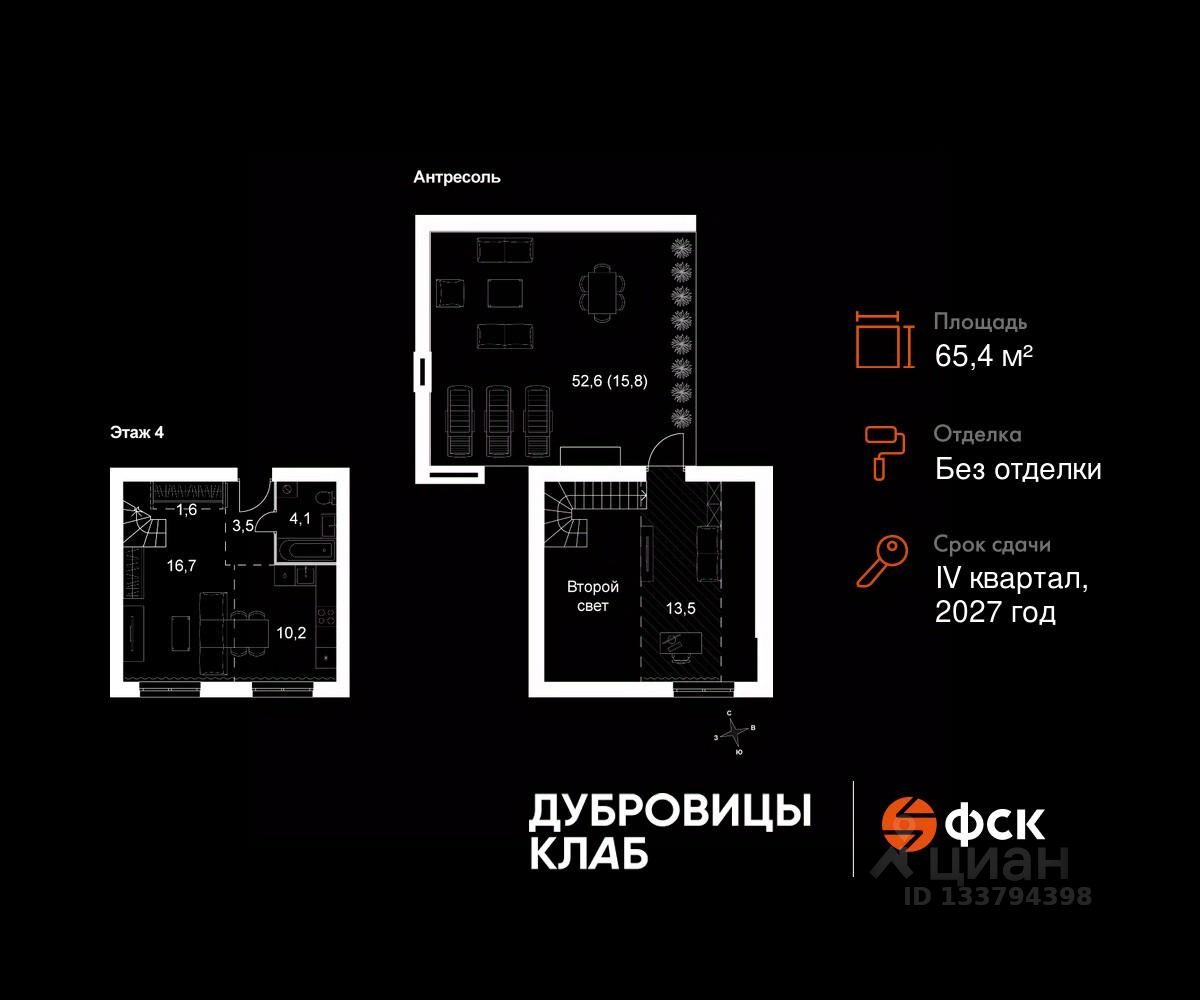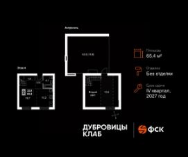 Продаётся 2-к квартира 13 общей площадью 65.4 кв.м на 4-м этаже 4 этажного дома. Без отделки.