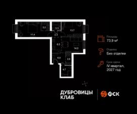Продаётся 3-к квартира 287 общей площадью 73.9 кв.м на 3-м этаже 4 этажного дома. Без отделки.