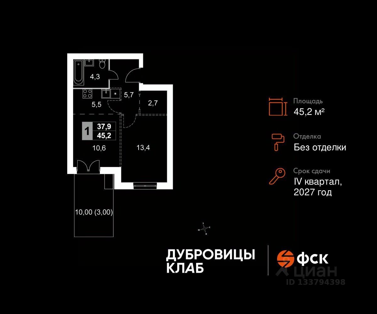 Продаётся 2-к квартира 39 общей площадью 45.2 кв.м на 1-м этаже 4 этажного дома. Без отделки.