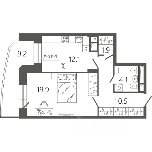 Жилой комплекс - это два монолитных здания высотой 17 этажей, облицованных кирпичом и выполненных в необычном архитектурном стиле с плавными линиями фасадов, в ярком цветовом решении и с панорамным остеклением. Квартиры в доме представлены вариантами от одной до трех комнат площадью от 45 до 97 кв. м. На этаже расположено по пять квартир. Планировка жилья очень функциональна кухни просторные, а в холлах можно сделать гардеробную комнату. Помещения передаются собственникам в базовой отделке, инженерные коммуникации отвечают всем современным требованиям.