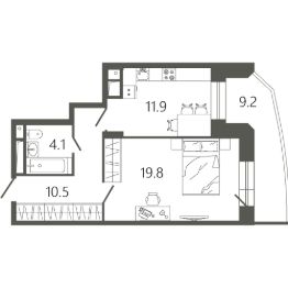 Жилой комплекс - это два монолитных здания высотой 17 этажей, облицованных кирпичом и выполненных в необычном архитектурном стиле с плавными линиями фасадов, в ярком цветовом решении и с панорамным остеклением. Квартиры в доме представлены вариантами от одной до трех комнат площадью от 45 до 97 кв. м. На этаже расположено по пять квартир. Планировка жилья очень функциональна кухни просторные, а в холлах можно сделать гардеробную комнату. Помещения передаются собственникам в базовой отделке, инженерные коммуникации отвечают всем современным требованиям.