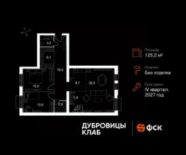 Продаётся 4-к квартира 103 общей площадью 125.2 кв.м на 4-м этаже 4 этажного дома. Без отделки.