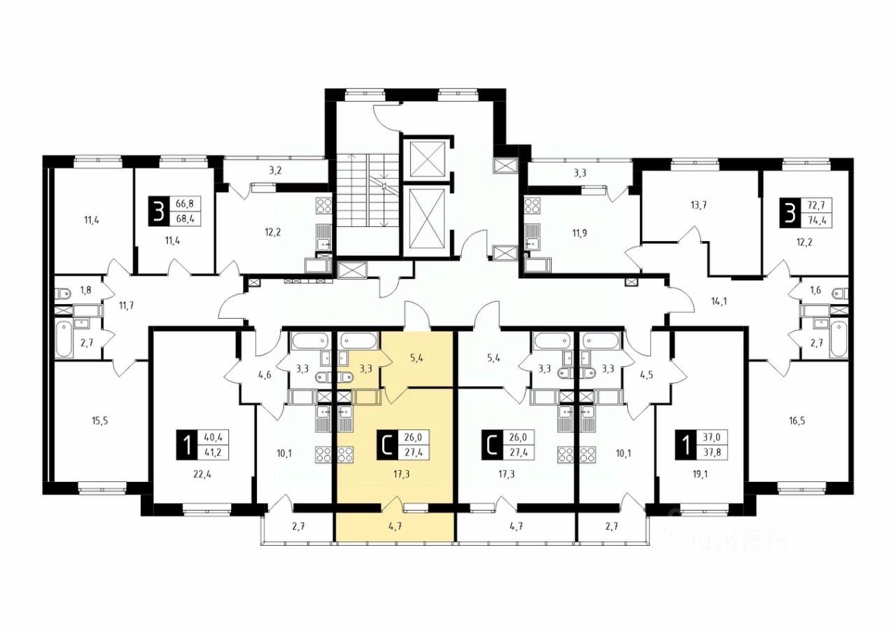 Продаётся студия в строящемся доме (Корпус 1), срок сдачи: 1-кв. 2026, общей площадью 27.40 кв.м., на 17 этаже.