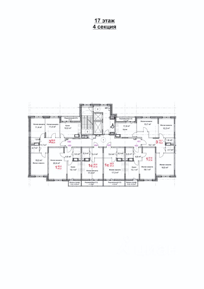Продаётся студия в строящемся доме (Корпус 1), срок сдачи: 2-кв. 2026, общей площадью 27.40 кв.м., на 17 этаже.