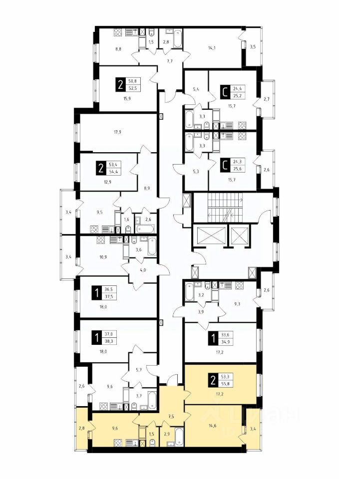 55,9 м²