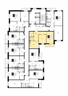 Продаётся 2-комнатная квартира в строящемся доме (Корпус 1), срок сдачи: 1-кв. 2026, общей площадью 54.20 кв.м., на 16 этаже.