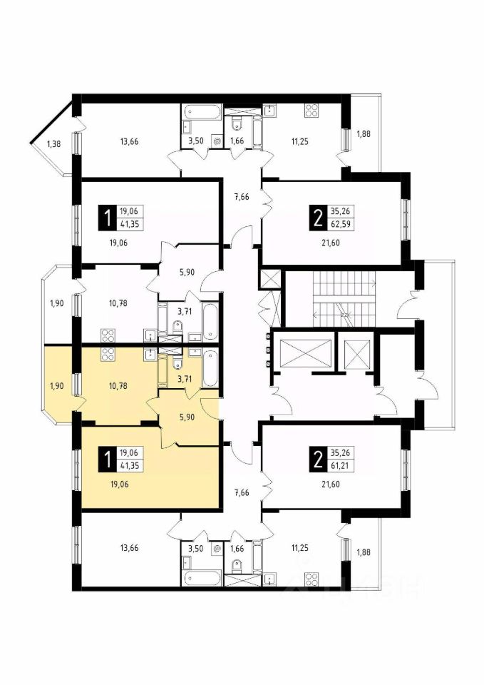 Продаётся 1-комнатная квартира в сданном доме (Корпус 41), срок сдачи: 4-кв. 2025, общей площадью 41.35 кв.м., на 17 этаже.
