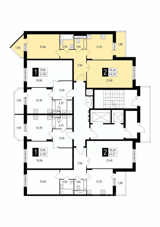 Продаётся 2-комнатная квартира в сданном доме (Корпус 41), срок сдачи: 4-кв. 2025, общей площадью 62.59 кв.м., на 15 этаже.