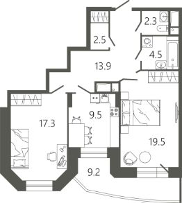 72,3 м²