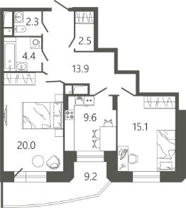 Общая площадь70,6 м²