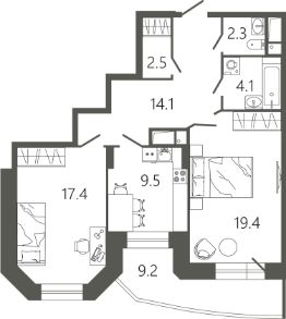 Общая площадь72,1 м²