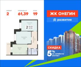 Продается квартира площадью 61.39 кв. м с отделкой White box. Квартира находится на 19 этаже 22 этажного дома, в новом жилом комплексе "Онегин", расположенном по адресу: Московская область, г. Подольск, ул. Садовая 3, корп. 1.