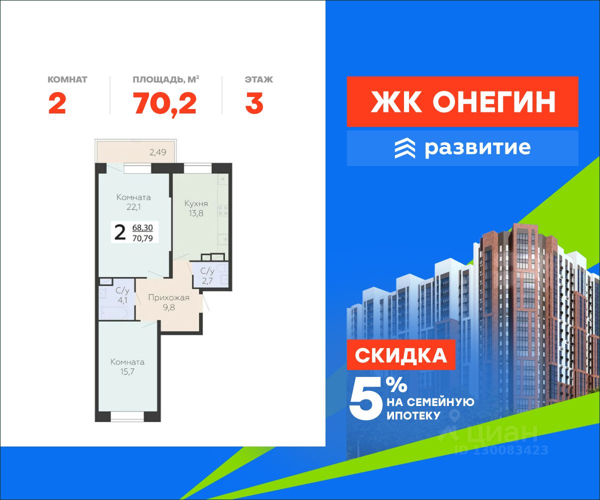 "Онегин" - комфорт в деталях. Проект от федерального застройщика "Развитие" расположился в центральной части Подольска - города-спутника столицы. Жилой комплекс состоит из 10 секций переменной высоты (20 - 22 этажа) и включает в себя 510 квартир, собственную инфраструктуру, закрытый благоустроенный двор-парк. Прекрасный баланс города и природы - ЖК "Онегин".