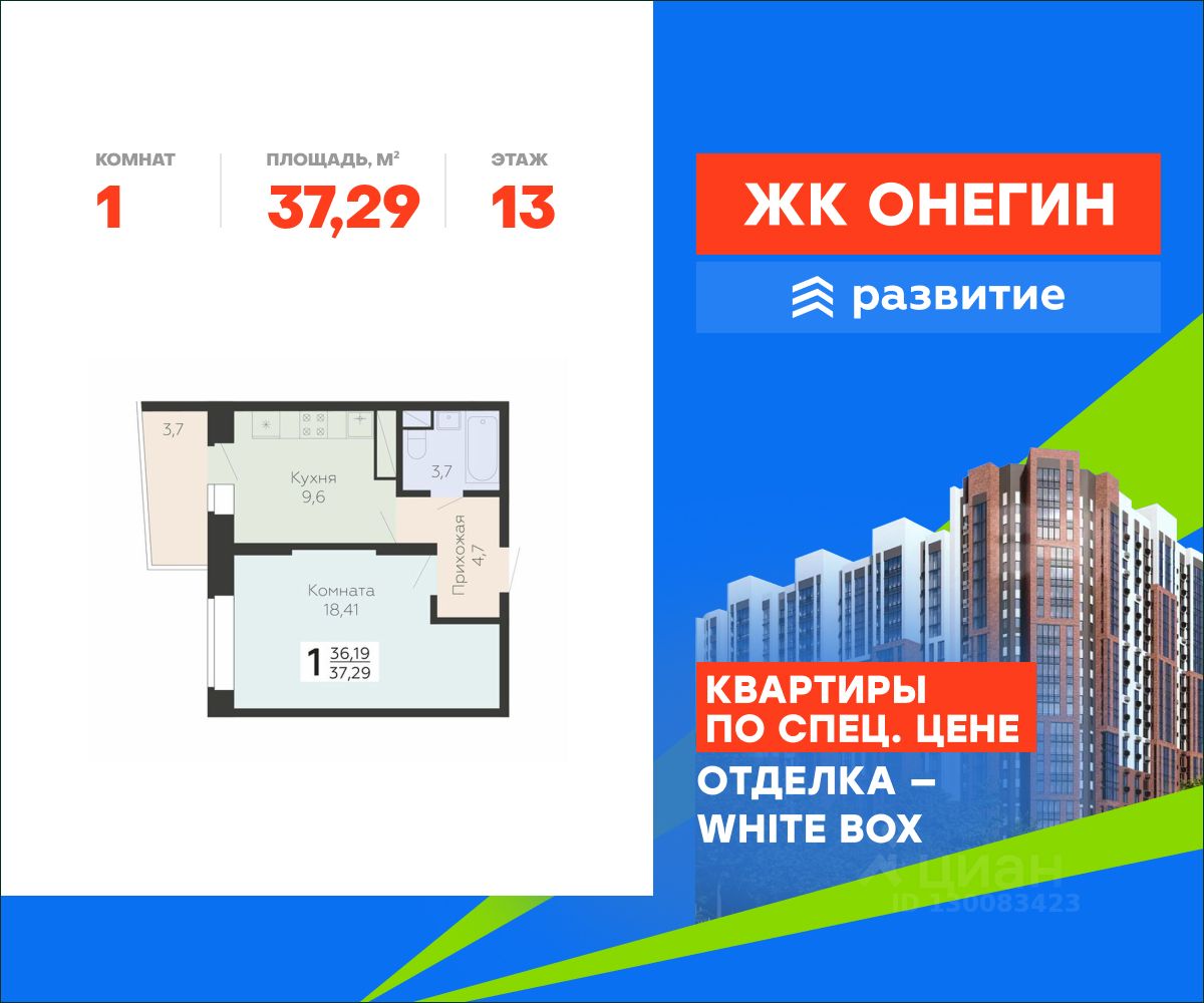 Продается квартира площадью 37.29 кв. м с отделкой White box. Квартира находится на 13 этаже 20 этажного дома, в новом жилом комплексе "Онегин", расположенном по адресу: Московская область, г. Подольск, ул. Садовая 3, корп. 1.