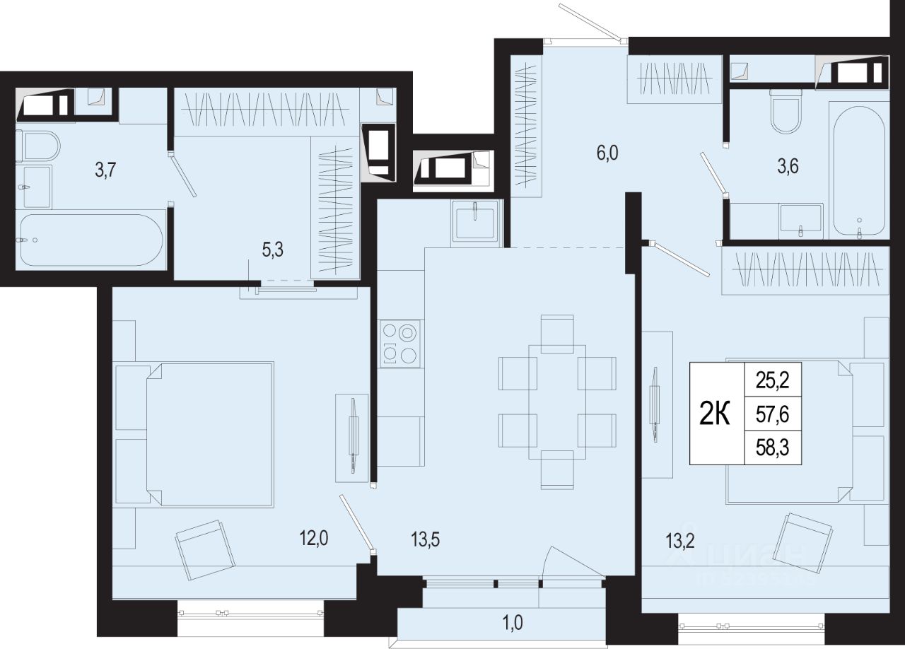 Продаётся 2-комнатная квартира в строящемся доме (Дом 17), срок сдачи: III-кв. 2026, общей площадью 57.6 кв.м., на 7 этаже. Жилой комплекс комфорт класса "Новая Щербинка" строится в 10 минутах от станции МЦД-2 "Щербинка". В основу концепции проекта взята атмосфера уюта и спокойствия.