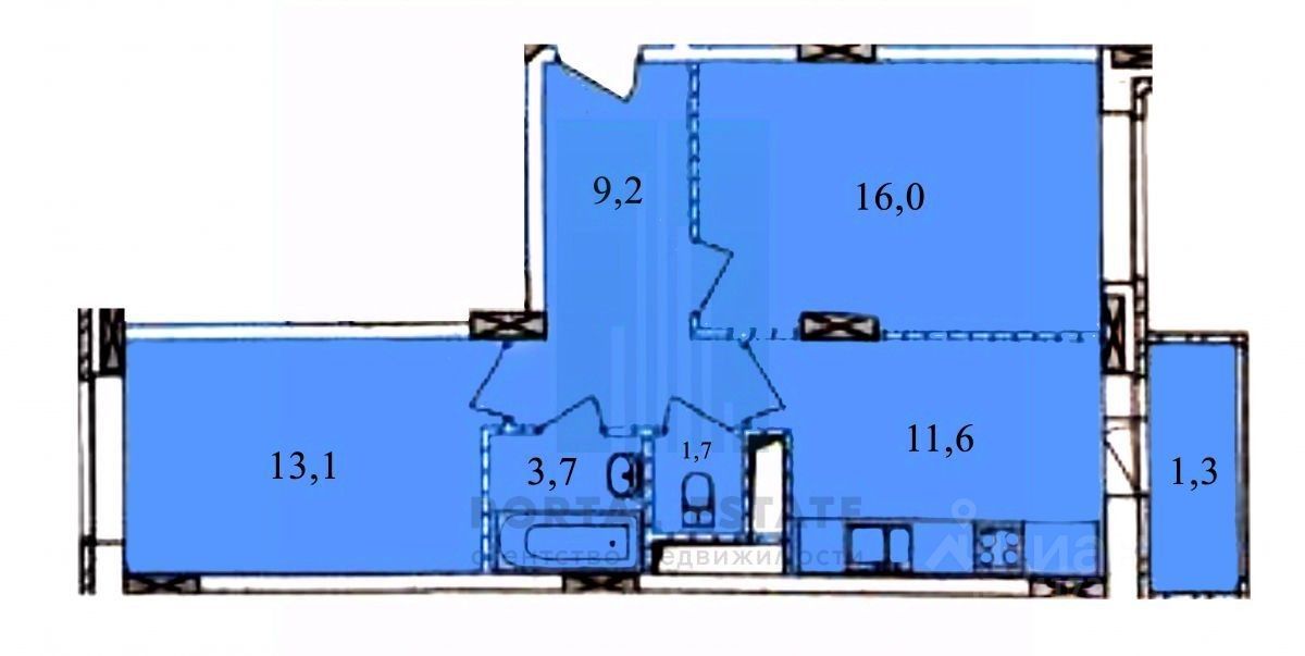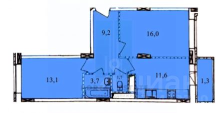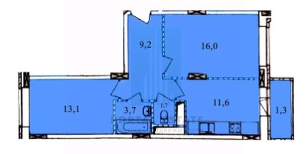Спальня1 16м2, Спальня2 13м2, кухня 12м2, коридор 9м2, раздельный санузел, балкон. Высота потолков 2.8м.