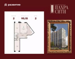 Продается 2-к квартира площадью 95.15 кв. м без отделки. Квартира находится на 2 этаже 24 этажного дома.