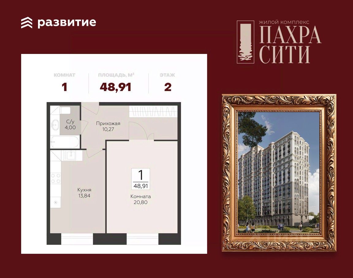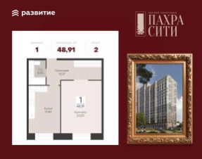 Продается 1-к квартира площадью 48.91 кв. м без отделки. Квартира находится на 2 этаже 24 этажного дома.