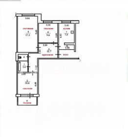 Параметры: общая площадь по ЕГРН 62.1 кв.м., комнаты: 17.1+10.6+9.6 кв.м, кухня: общая площадь 7,5 кв.м., кладовка 1.5 кв.м., Балкон: 3.7 кв.м.