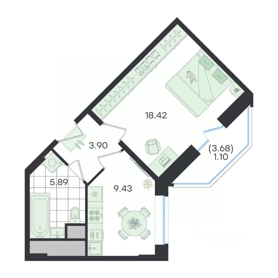 Жилая площадь18,4 м²