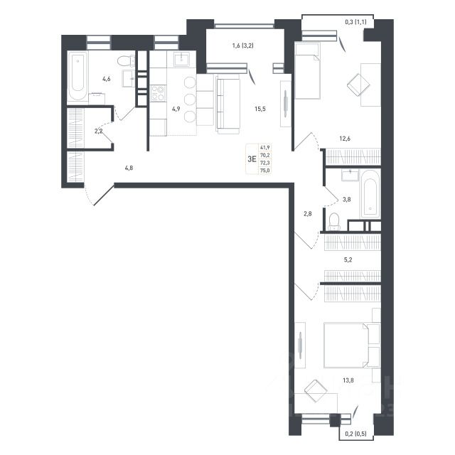 Продается уютная 3-комнатная квартира площадью 76.1 кв. м, расположенная на 4 этаже 8-этажного монолитного дома, построенного в 2025 году. Просторная кухня площадью 15.5 кв. м станет отличным местом для семейных ужинов.