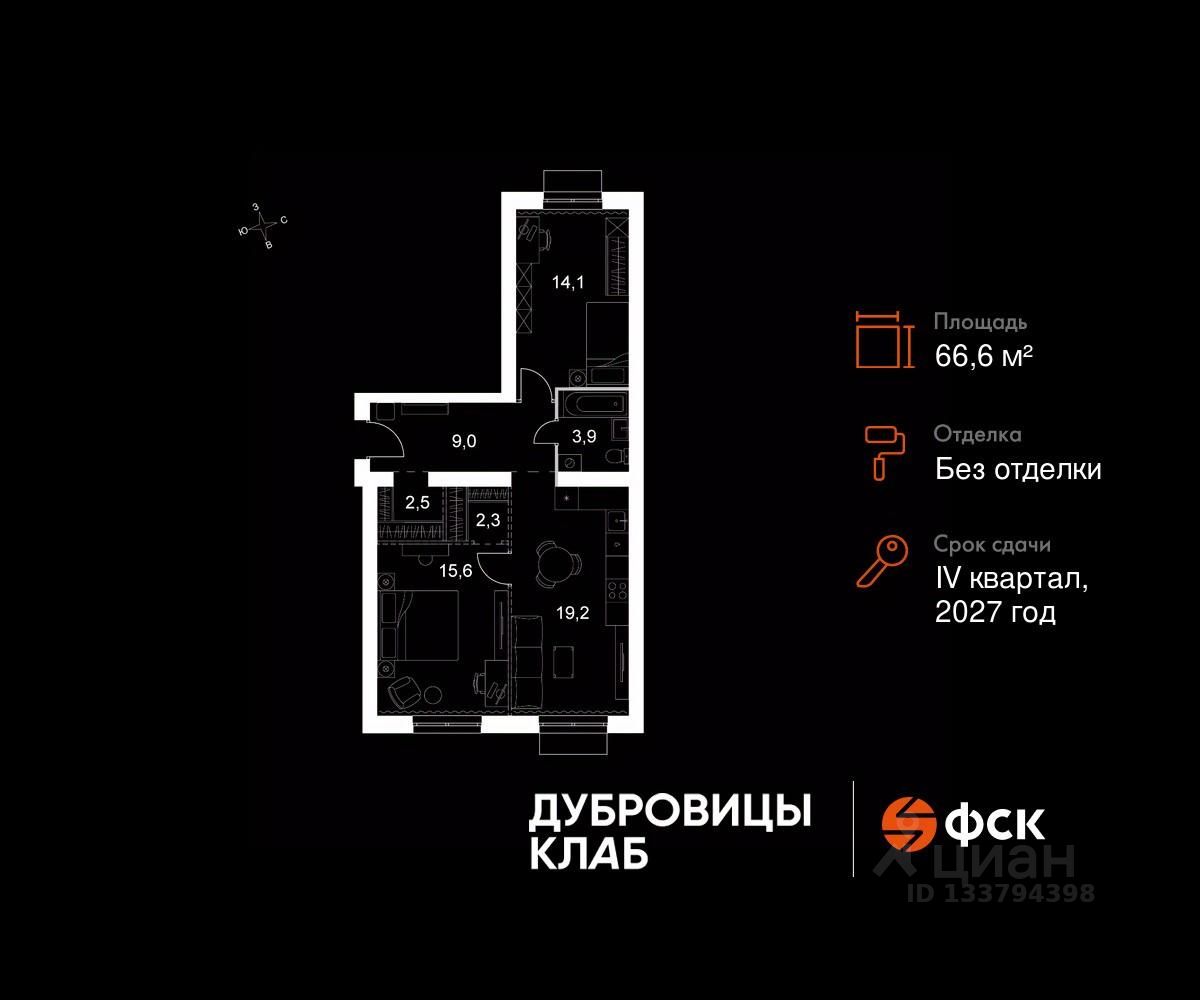 Продаётся 3-к квартира 37 общей площадью 66.6 кв.м на 2-м этаже 4 этажного дома. Без отделки.