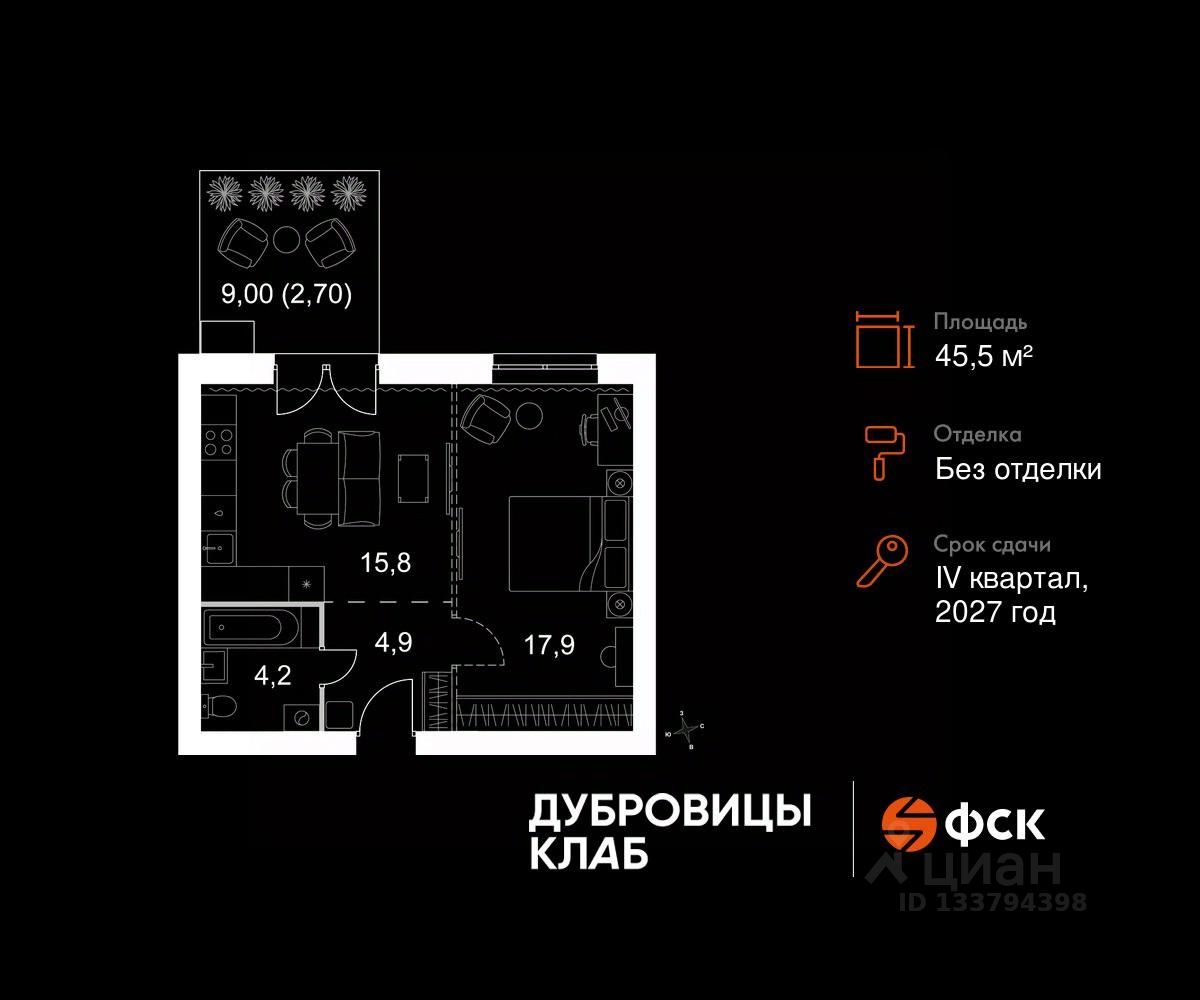 Продаётся 1-к квартира 191 общей площадью 45.5 кв.м на 1-м этаже 4 этажного дома. Без отделки.