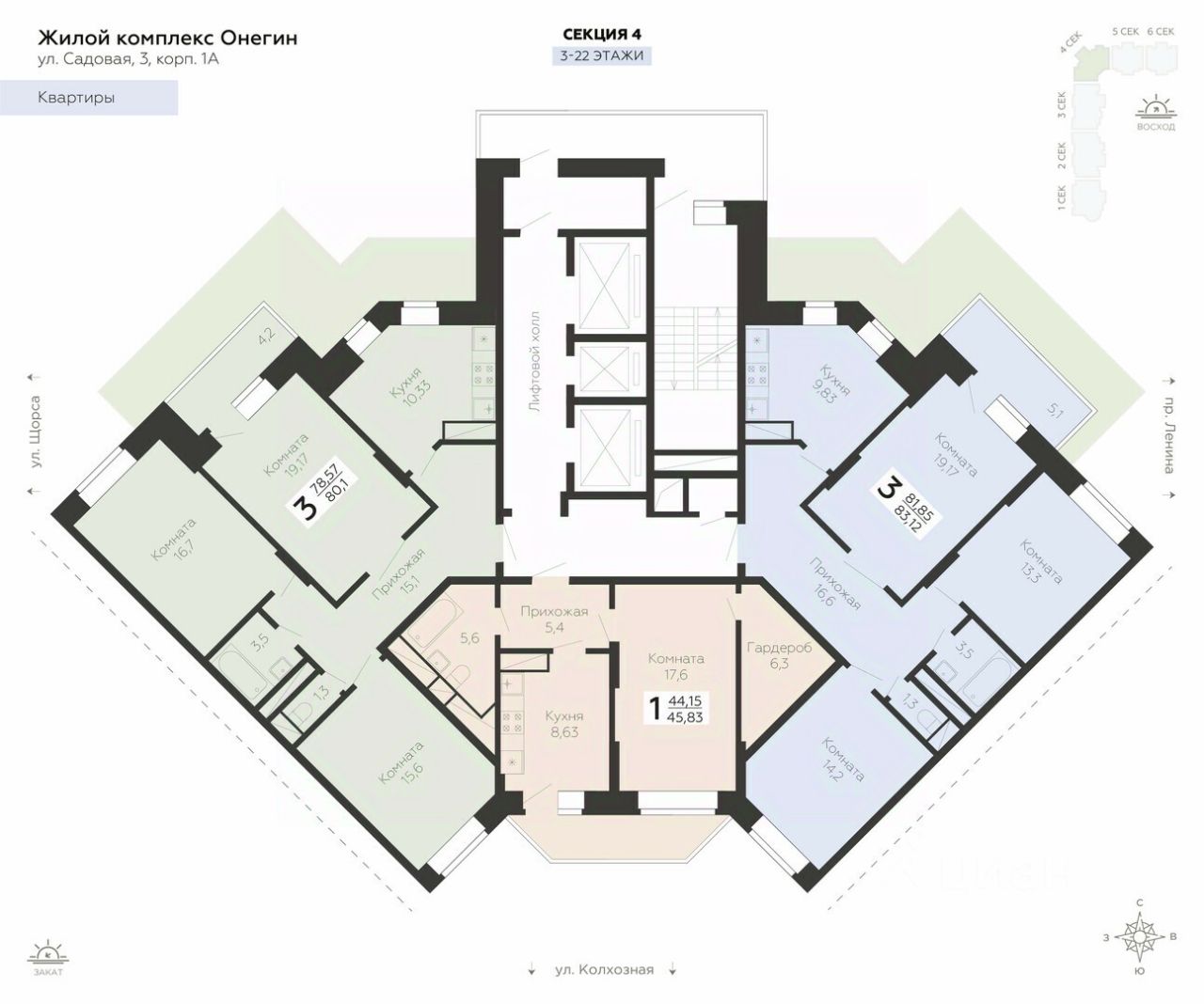 Продается 3-к квартира площадью 80.1 кв. м с черновой отделкой. Квартира находится на 13 этаже 22 этажного дома, в новом жилом комплексе "Онегин", расположенном по адресу: Московская область, г. Подольск, ул. Садовая 3, корп. 1А.