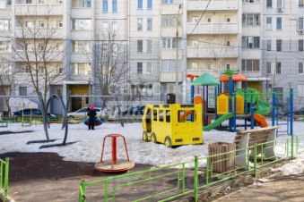 Вид из окон: На тихий двор с детской и спортивной площадками.