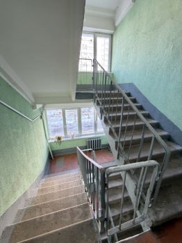 Дом после капитального ремонта: новые пластиковые окна в подъездах, обновленный фасад — чисто и ухоженно.
