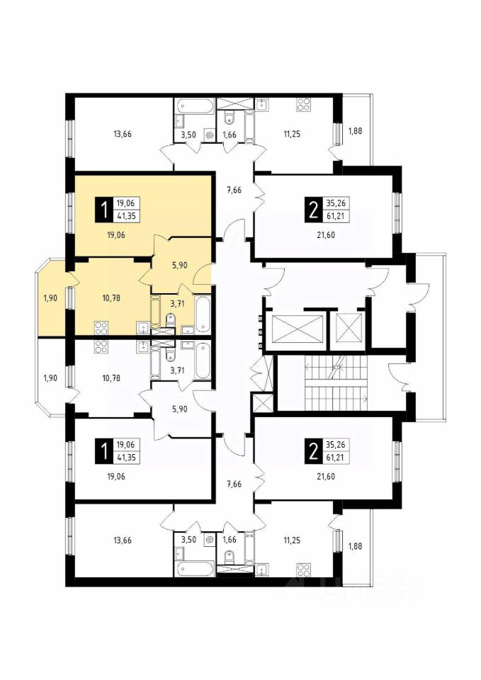 Продаётся 1-комнатная квартира в сданном доме (Корпус 41), срок сдачи: 4-кв. 2025, общей площадью 41.35 кв.м., на 14 этаже.