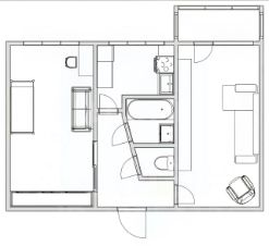 Функциональная планировка включает в себя 2 изолированные комнаты, кухню, раздельный санузел. Если обратите пристальное внимание на нее, то удивитесь ее уникальности. Зона кухни, расположена в центре квартиры, что даёт возможность каждому члену семьи заниматься любимым делом, не мешая при этом остальным. Она меблированная и укомплектованная кухонным гарнитуром и бытовой текинкой.