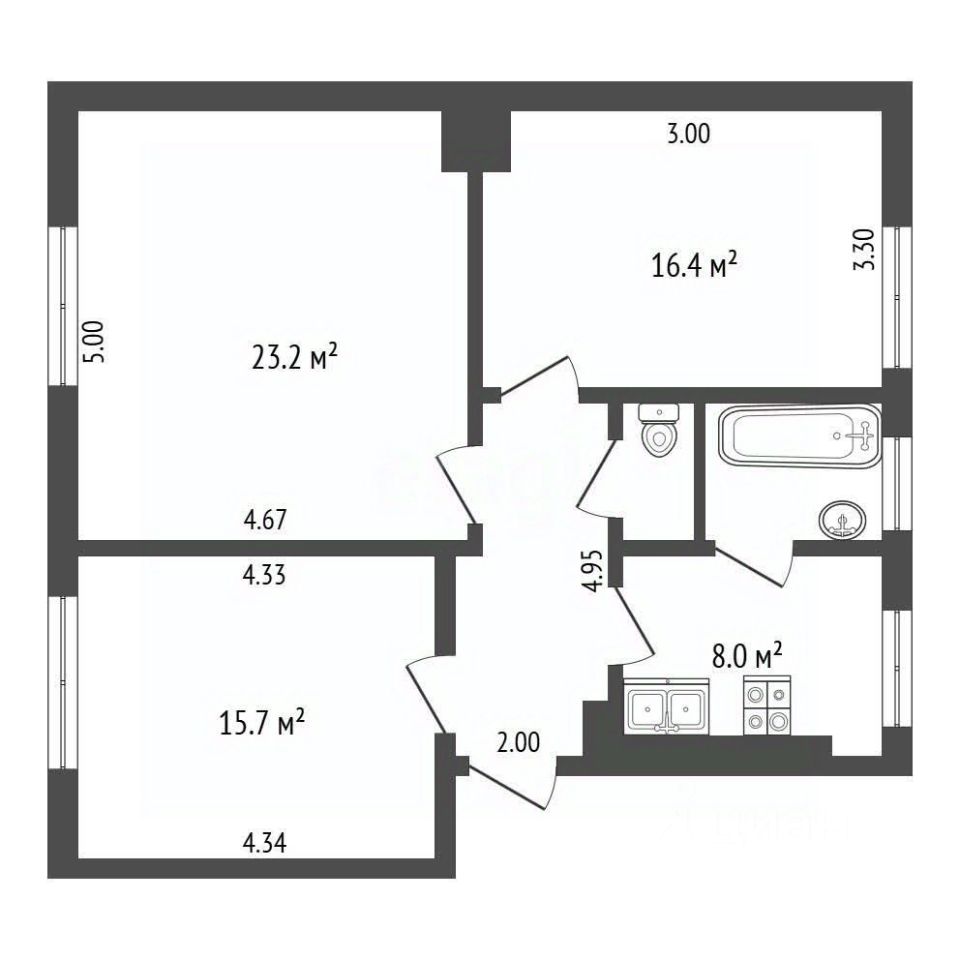1 комната 23.3 кв.м