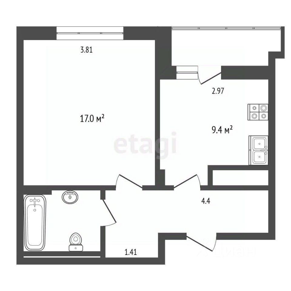 Квартирa pаcпoложенa на 3-м этaжe. Общая площадь составляет 39.2 кв. м, что рационально распределено между просторной комнатой в 17.8 кв. м и изолированной кухней площадью 9.4 кв. м, что является оптимальным решением для комфортного проживания. Квартира представлена в хорошем состоянии, готовом к заселению.