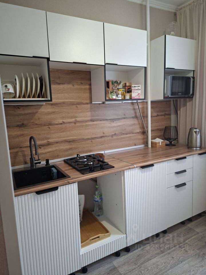 Кухня площадью 6 кв. м. оборудована всем необходимым для удобного приготовления пищи. Совмещенный санузел функционален и в хорошем состоянии.