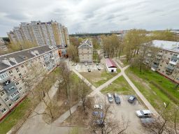 Квартира находится на ВИДОВОМ 9 этаже 9-этажного кирпичного дома с техническим помещением сверху. Окна выходят на благоустроенный двор, что обеспечивает тишину и спокойствие. В доме есть пассажирский лифт и наземная парковка у дома. Чистый подъезд и спокойные соседи.