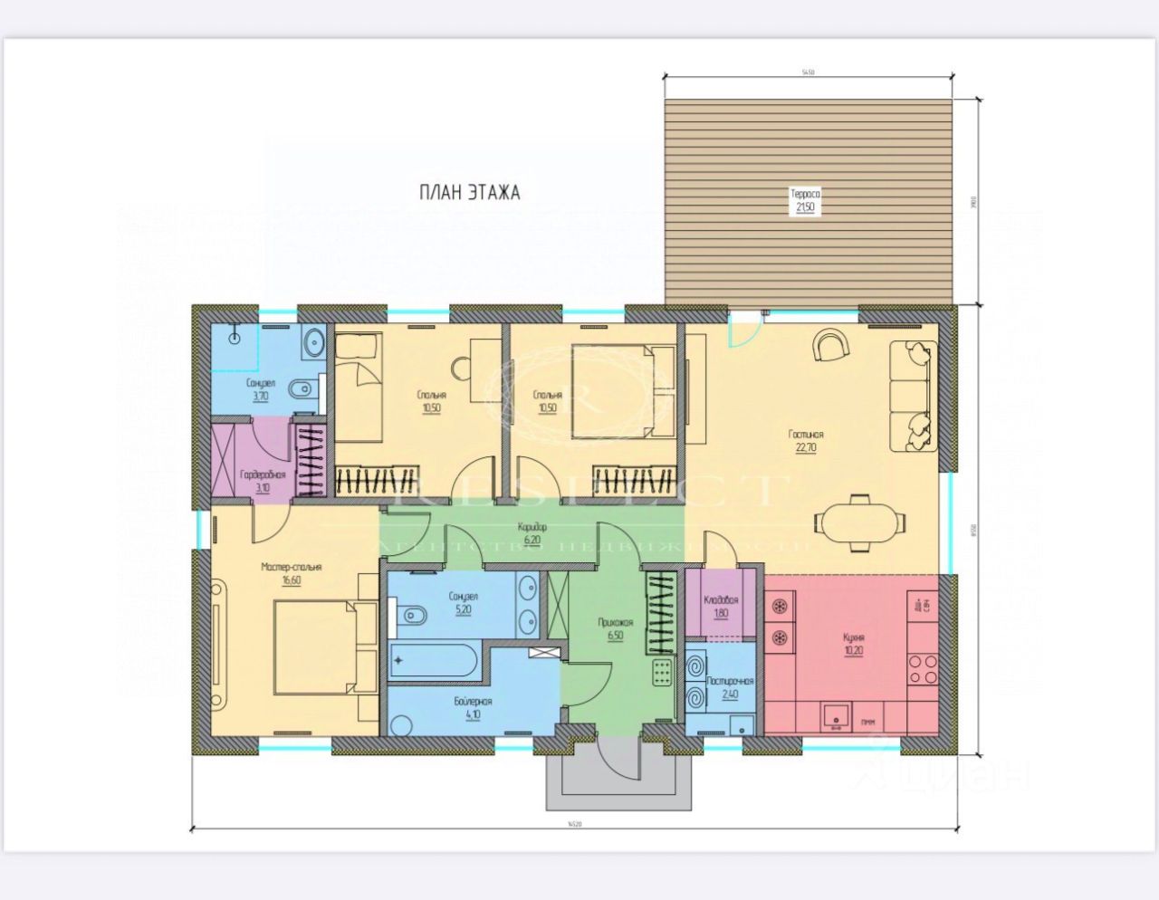 • Электрические тёплые полы на кухне, в гостиной, в санухлах и в прихожей с отдельными терморегуляторами;