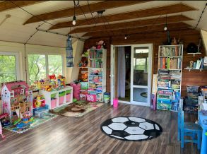 В доме гостиная с камином, 3 спальни, 2 санузла, кухня и терраса для отдыха, имеется комната под газовое оборудование.