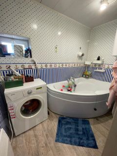 Дом построен из сруба и пеноблоков, обшитый блок-хаусом.