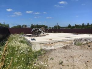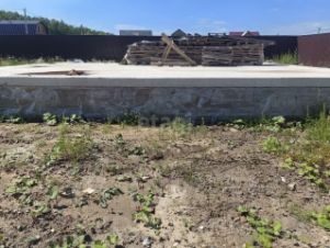 Забор по периметру, на участке стоит бытовка, есть фундамент с цокольным этажом размер 10х12, можно построить хороший и большой дом для большой семьи.