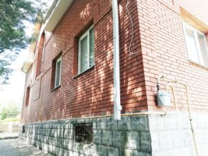 --- Материал стен дома бревно-сруб, обложен кирпичом.