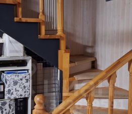 Первый этаж - веранда, просторная кухня-гостиная, санузел, удобная лестница, второй этаж - 3 спальни, санузел.