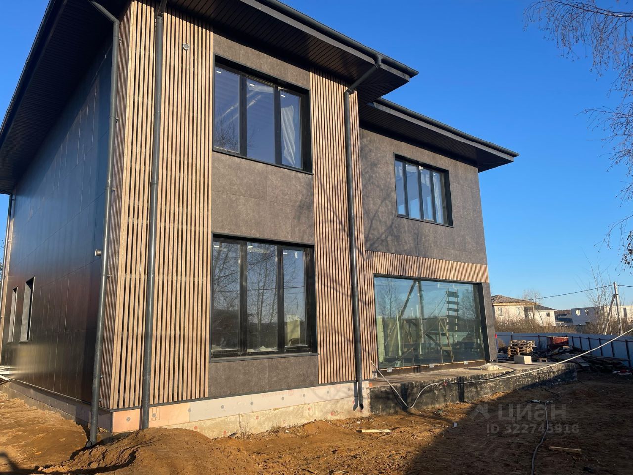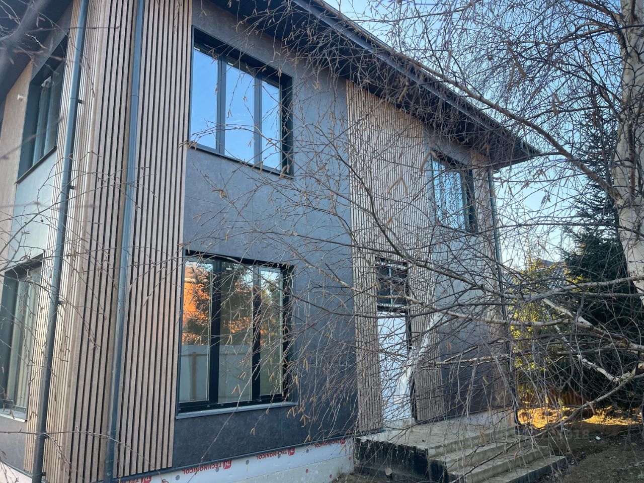Дата постройки дома: 2024 год. Материал- газосиликат. Большие окна, в т.ч. огромное панорамное окно в объединенной зоне кухни-гостиной, 2 этажа, внутри выполнена штукатурка во всех помещениях, смонтирована приточная вентиляция Energоlux, выполнено канальное кондиционирование. На участке имеется скважина глубиной 100м, септик, электричество. Коммуникации в дом заведены. Газ по границе участка. Фасад: керамогранит и металлические рейки.